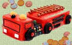 1 baked 13- x 9- x 2-inch cake Red M&M's Chocolate sandwich cookies Black shoestring and twist licorice
